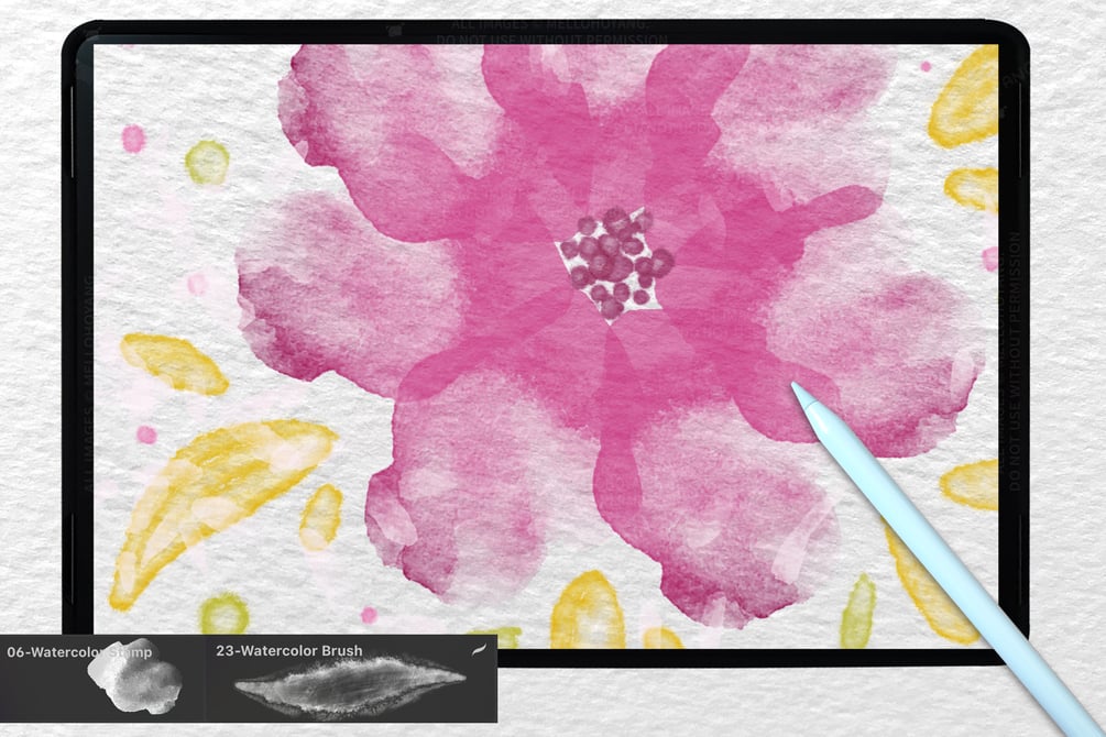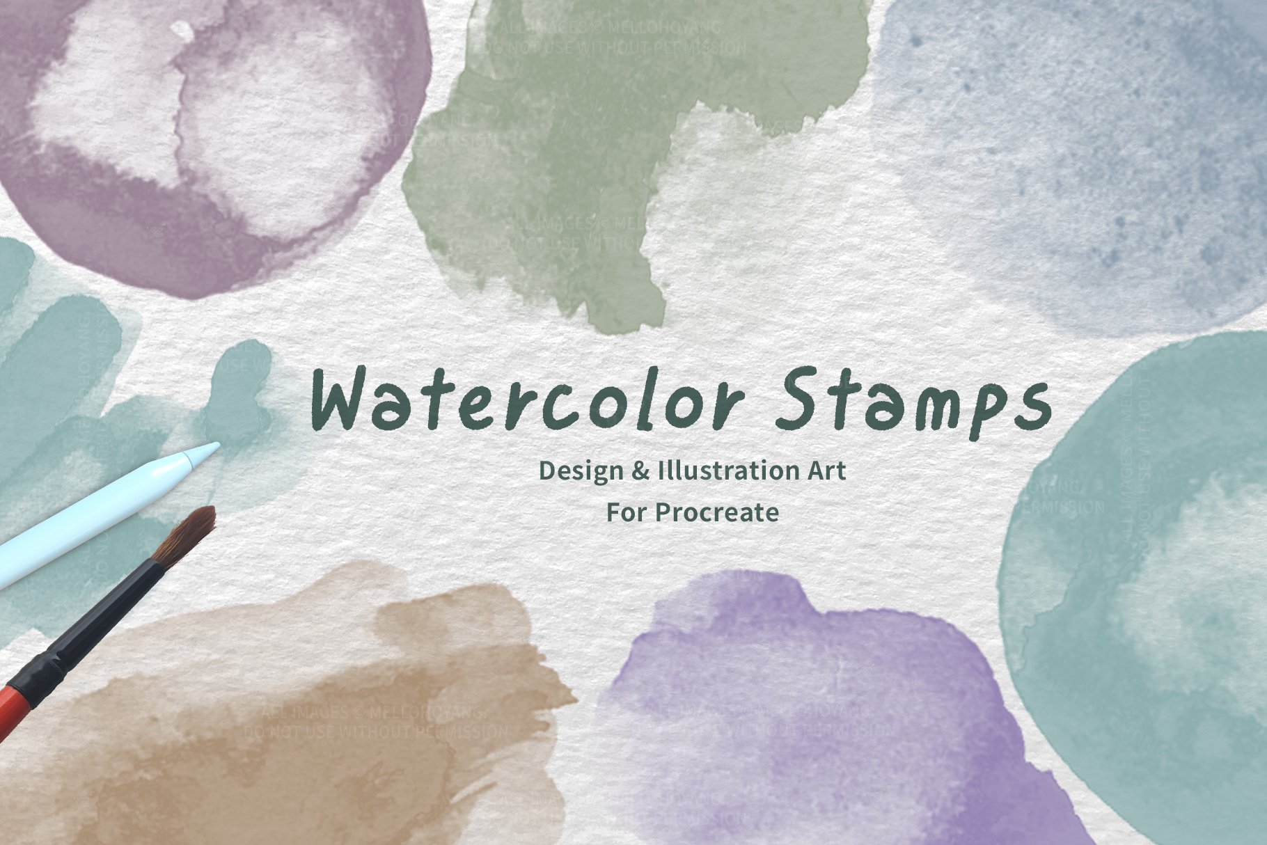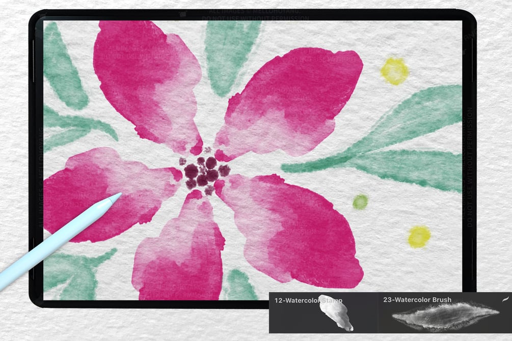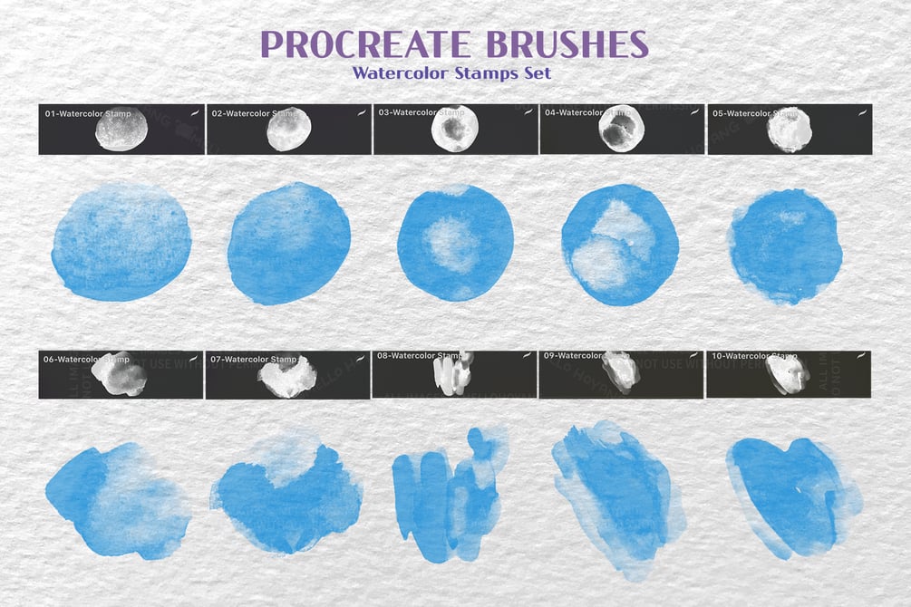 26 Watercolor Stamps Brushes For Procreate