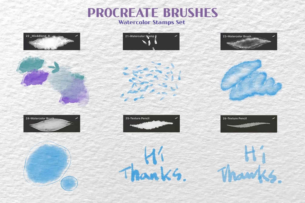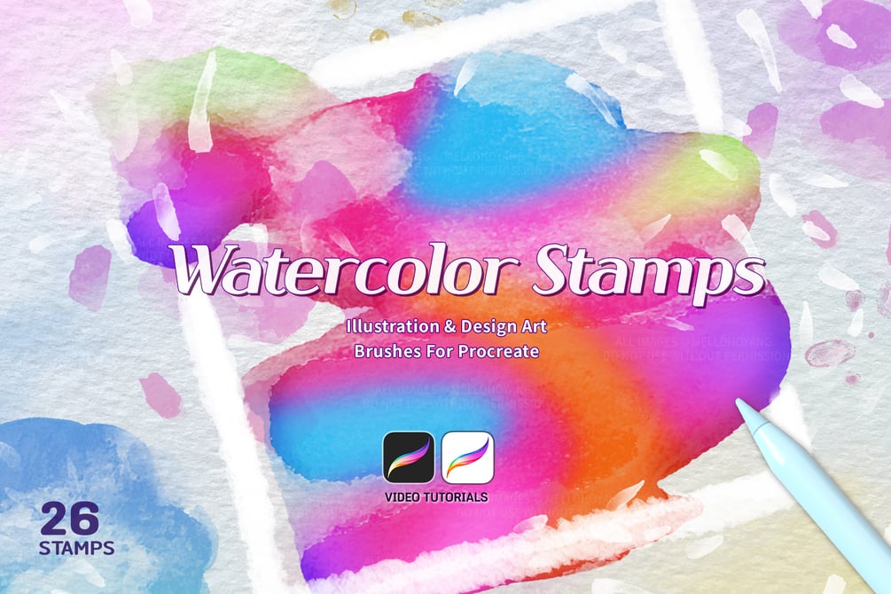 Procreate-only 26 watercolor stamp brushes.